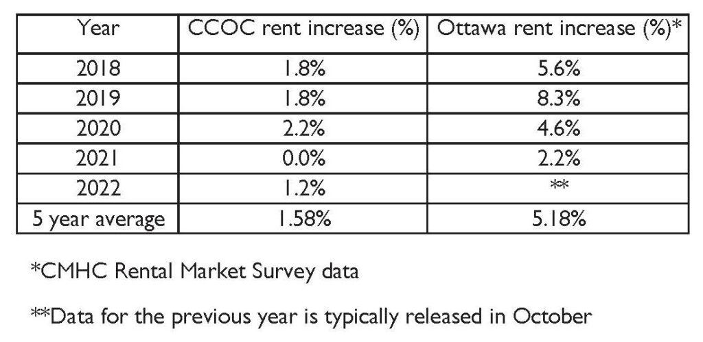 Over the past five years, rents in Ottawa have gone up by an average 5.2% per year. Over the same period, CCOC has been able to hold our rent increases to an average of 1.6% per year. Like everyone in our community, CCOC is facing major financial pressure from rising costs.